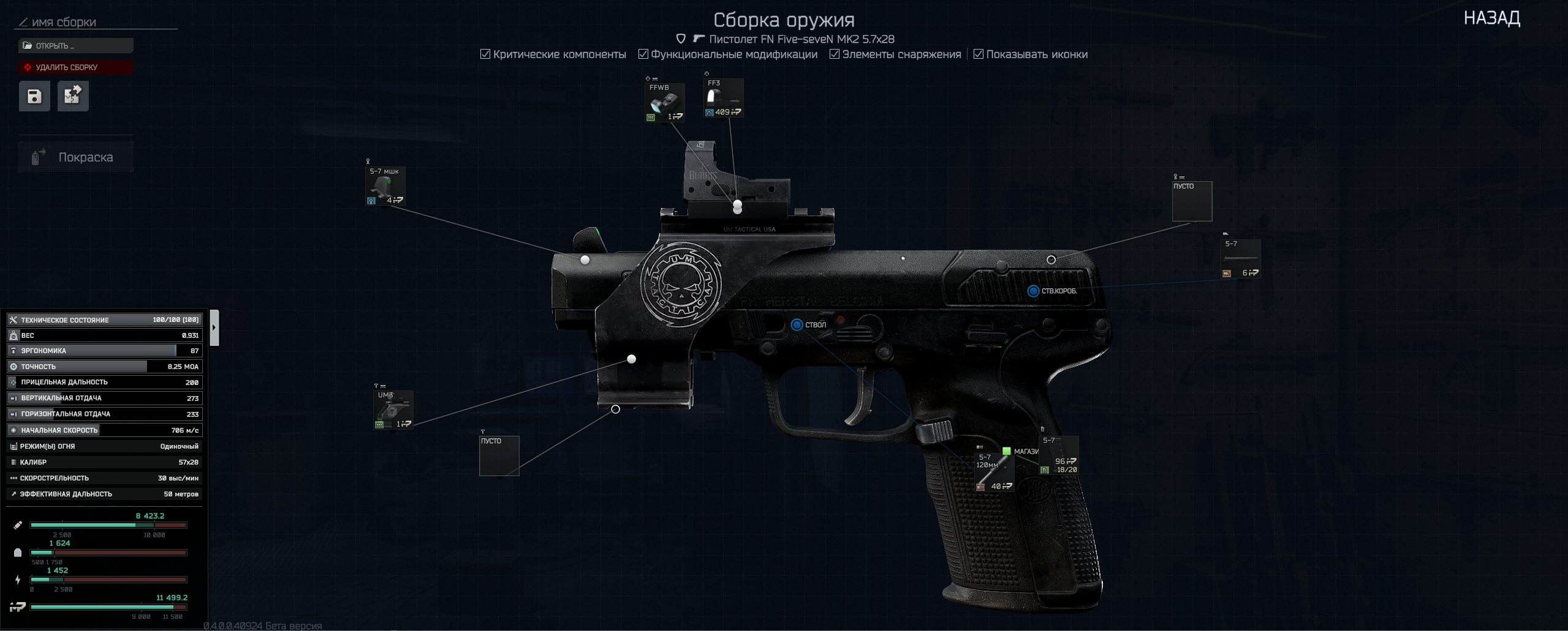 При заклинивании основного оружия в сборке предусмотрен пистолет.